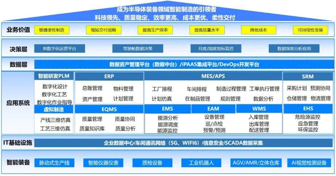 北方华创以《国家智能制造标准体系建设指南(2024版)》为设计纲领,结合企业实际业务需求,聚焦数字化基础设施建设、工艺数字化设计、柔性脉动式自动化产线规划、智能仓储物流管理、生产全链条可视化跟踪管理、全流程质量精准追溯管理等15个智能场景,一步一个脚印落实集团“十五五”规划目标,打造面向未来的新质生产力。